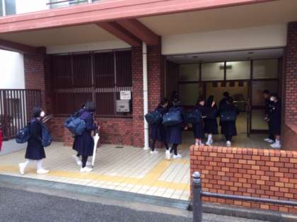 2月4日、7時30分頃の気温が12度と少し暖かい朝を迎えました。雨もあがり、皆さんさわやかに登校してきます。