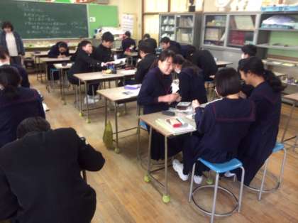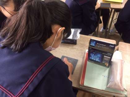 3年美術の授業の様子です。ライトスクラッチを作っています。とてもキレイに出来ていますね〜。