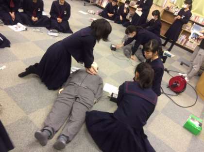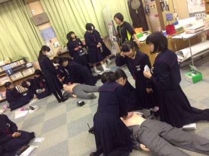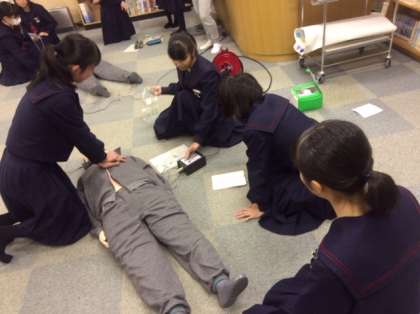 4人グループでローテーションして実習しました。気道確保を忘れるなど手順通りスムーズにいかない場面もありましたが、いい体験になったと思います。