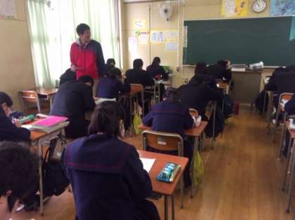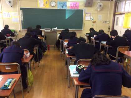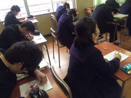 3年英語の授業の様子です。受験対策の授業ですね。まずはリスニングテストです。シーンとした中で真剣に聞き取りが続きます