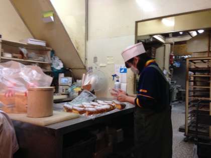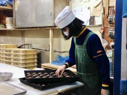 「ベーカリーショップグリーン」の様子です。クリームパンの仕上げやレジ打ちなどをしています。上手にできるかな。