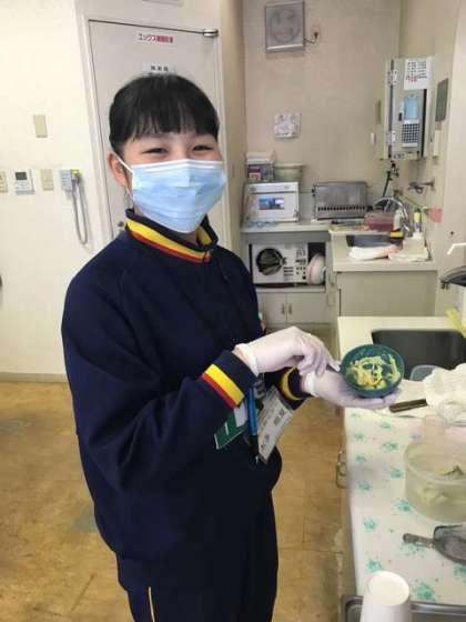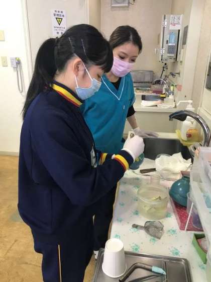 「医療法人 加藤歯科」の様子です。歯の型取りをするためのものを粉と水で作っています。