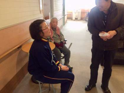 「みずほ倶楽部」の様子です。お年寄りの方とお話をしていました。施設の方から2人ともしっかりした生徒さんですね〜。とお褒めの言葉をいただきました。