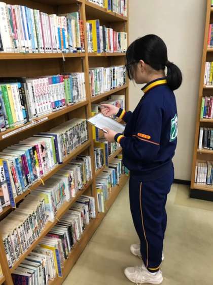 「天王寺図書館」の様子です。蔵書の整理をしたり、予約が入っている本を検索したりしています。10冊以上探さなければならないので大変のようです。