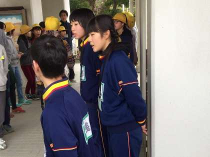 「真田山小学校」の様子です。早い時間から登校指導に始まり、授業のお手伝い、清掃と盛りだくさんの体験でした。