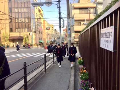 2月12日、三連休あけの朝の登校の様子です。3年生の中には、すでに私立高校の合格通知が届いている生徒もいるのでしょう。表情の明るい生徒もチラホラいます。今週も頑張りましょう。