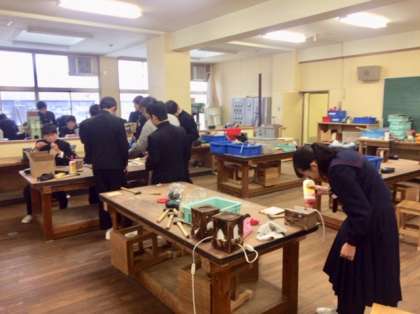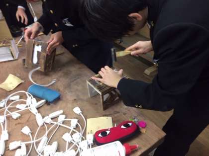 3年技術の授業の様子です。木製のスタンドを作っているようです。なかなかいい物が出来ていますね〜。部屋のインテリアとしていいかも。