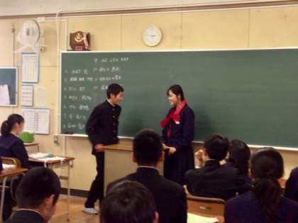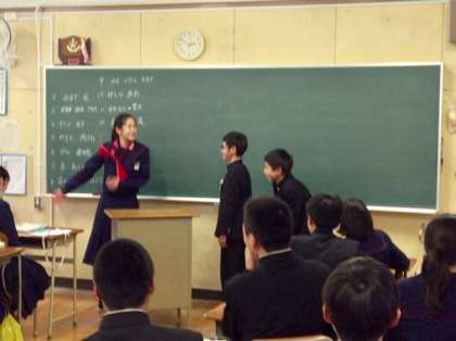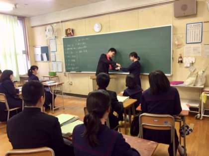 2年英語の授業の様子です。買い物のスキット(台本)を自分達で考えて英語でやり取りします。