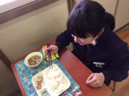 今日の「あげ鶏のねぎソースかけ」は人気メニューです。唐揚げみたいな感じですね〜。余ったあげ鶏をめぐってたくさんの手があがり、先生とのジャンケンが始まりました。