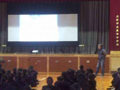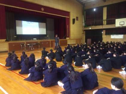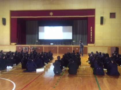 5時間目、1年生は体育館で進路学習を行いました。進路指導主事の鈴木先生から公立高校の合否決定のシステムなど高校入学者選抜制度についての説明やチャレンジテストの活用方法などの説明がありました。今のうちからしっかりと学習しておきましょう。