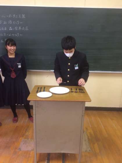 何やら小道具を駆使しての発表もありました。テーブルマナーのようですね〜。