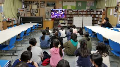 本日、ベアーズ吹奏楽がありました。本校吹奏楽部の演奏会の映像を興味津々に見ていました。