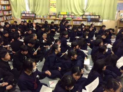 6時間目、2年生は修学旅行の説明を受けました。大変盛り上がりました。行き先はこの学年から長崎になります。楽しみですね〜。