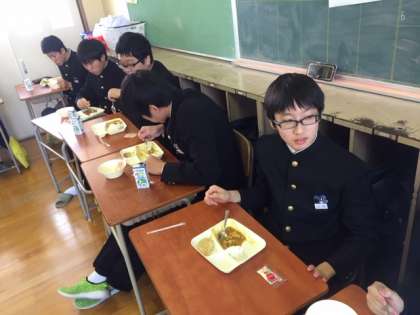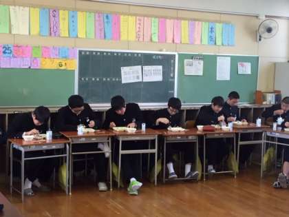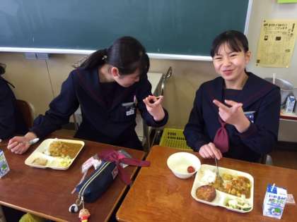 2枚目の写真、私はだ〜れ。バスケの女王でしょ。3年生のみなさ〜ん。最後の給食は美味しく楽しく食べられましたか。中学校の給食、感謝を込めてごちそうさまでした。