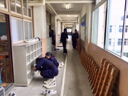 3年生は清掃を行ったり、掲示物やカーテンを取り払ったりと教室の整備を行いました。飛ぶ鳥跡を濁さずですね。