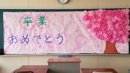 本日で中学校生活最後になる卒業生を迎える教室です。