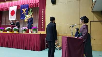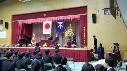 開式後、国歌斉唱、校歌斉唱に続き、卒業証書授与。1組