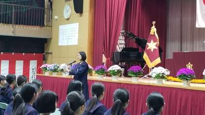 在校生送辞「もし、心が折れそうな時には、みなさんが培われた知識や経験、仲間と笑いあったこと、そして私たちを最後まで引っ張ってくださったことを思い出してください。私たちはこの感謝の気持ちをずっとわすれません。」