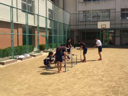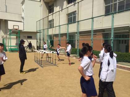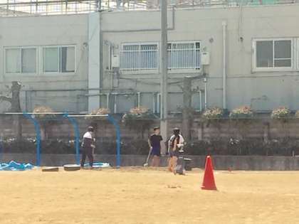 3月26日、グラウンドでは陸上部がトレーニングをしています。暖かくなってきました。卒業生も参加していますが、ブランクを感じますね〜。