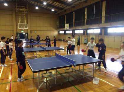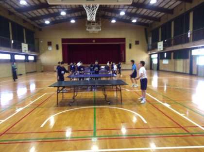 体育館では卓球部が活動しています。全面を使えるといい実践練習ができますね。