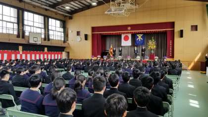 最後に、午後1時50分より、体育館にて生徒との離任式がありました。