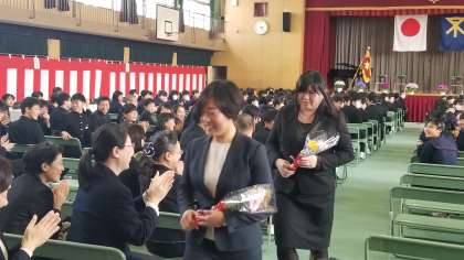 最後に、みなさんから拍手で見送られました。それぞれ次の学校でも、ご活躍されることをお祈りします。お世話になりました。ありがとうございました。