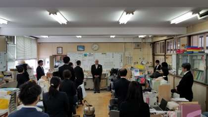 まずは職員室で退任式をおこないました。
