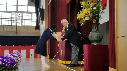 生徒代表からお礼の言葉があり、花束が贈られました。