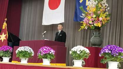 開会の言葉、国歌斉唱、大阪市歌斉唱に続き、学校長式辞がありました。