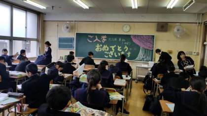 はじめての学級活動の様子です。まずは、たくさんの教科書を配布しています。