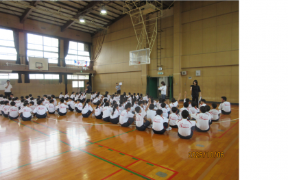 出場種目ごとの招集練習に取り組んでいます。グランドコンディション不良のため体育館での実施となりました。