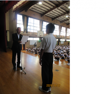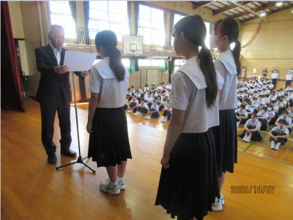 バスケットボール部・水泳部・美術部の皆さんを表彰しました。