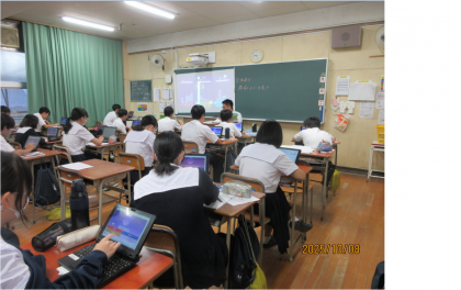 明日から中間テスト。教室では既習事項のおさらいや問題演習などの授業が展開されています。写真は上から順に1年生数学、2年生理科、3年生社会科の授業の様子です。