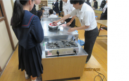 「蒸す」をテーマに調理実習に臨むにあたり、蒸し方について予習している様子です。
