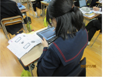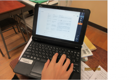 社会の身近な話題について賛成か反対か立場を明確にした上で、その理由や根拠を英文で表現します。完成した文章を学習者用端末で撮影し、AIに添削させます。添削結果をふまえ、より良い表現方法を身につけました。