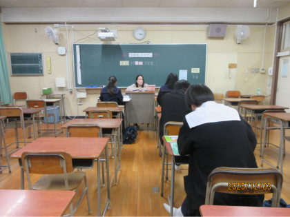 放課後の自主学習会です。公立高校選抜に向けて、自己申告書の下書きに取り組む生徒も見受けられます。