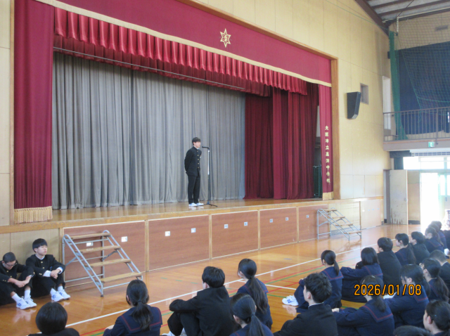 2学期末に行われた部活動部長会議で話し合われたことがらを、代表生徒が発表してくれました。