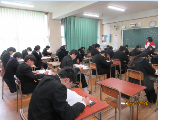 〇2月26日(木曜日)1・2年生学年末テスト