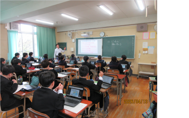 六大陸・三大洋について、学習者用端末を用いて調べ、分かったことがらをワークシートにまとめました。