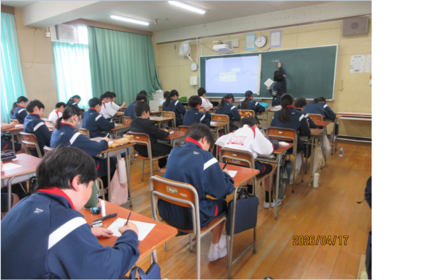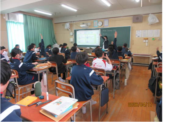 授業のはじまりは、英語での挨拶。日にちや曜日を尋ねる(答える)会話を練習しました。