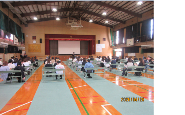 授業参観終了後、体育館で令和7年度PTA決算総会、1年生一泊移住保護者説明会が開催されました。