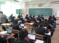 国語、数学、技術の授業の様子です。国語は新出漢字の確認、数学は多項式の計算、技術...