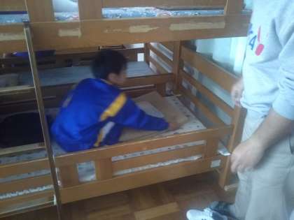 使用した寝具や自分の荷物整理をしました。スタッフの点検で合格がでなければ、やり直しです。