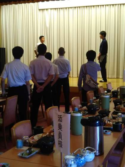 大ホールで入館式を行いました。生徒代表な挨拶のあと、ホテルの方からのお話がありました。