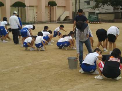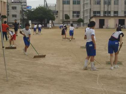 午後から明日の体育大会に向けての準備を行いました。委員や部活の生徒たちの力を借りて、石拾い、グラウンドの整地、入退場門やテントの設置など明日の体育大会の準備は整いました。