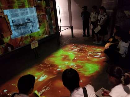 大阪大空襲の様子や被害、爆弾の大きさ、空襲の被害などをプロジェクトマッピングの上映を通して、肌で感じることができました。