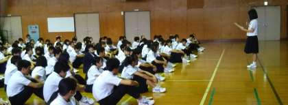 先週に引続いて3連休で月曜日が休みであったので、今日、全校集会を行いました。校長先生から"今を大切にして過ごしましょう"と言う話がありました。その後、生活指導担当より"更衣調整期間"と"遅刻防止週間"の連絡がありました。生徒会からは"中間テストに向けて計画的に勉強しましょう"との言葉がありました。