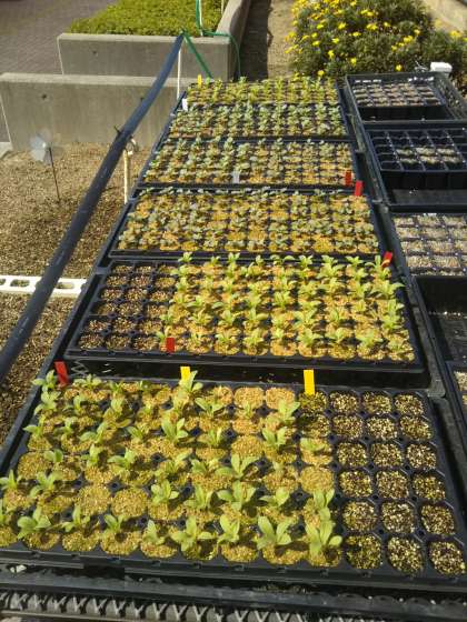 「種から育てる地域の花づくり」で、先月に種をまいた"キンセンカ"と"葉牡丹"の芽が出てきました。もう少し大きくなってくる3週間後に、大きなポットへの植え替えを予定しています。