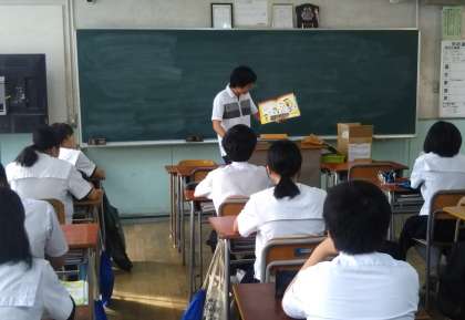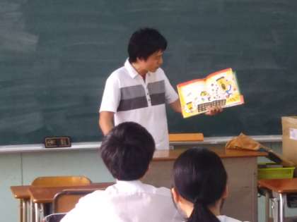 2学期、2回目の"ブックトーク"活動でした。隔週火曜日の朝学活の時間に、地域ボランティアの方や先生が、気持ちを落ち着かせ、学習にも入れるようにと、絵本の読み聞かせを行っています。今日から国語の先生も読み手に加わり、えほん寄席"んまわし"を読みましたが、生徒たちも寄席にいるような雰囲気で聞いていました。