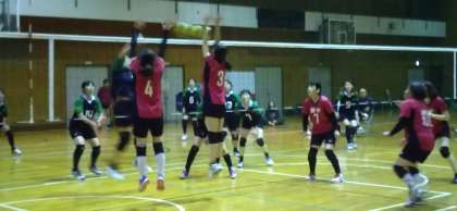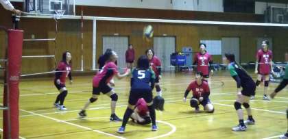 難波中学校の体育館で、栄小・塩草立葉小・難波中のPTAによるスポーツ大会(バレーボール)を開催しました。9人制の総当たり形式で行われましたが、惜しくも敗れました。